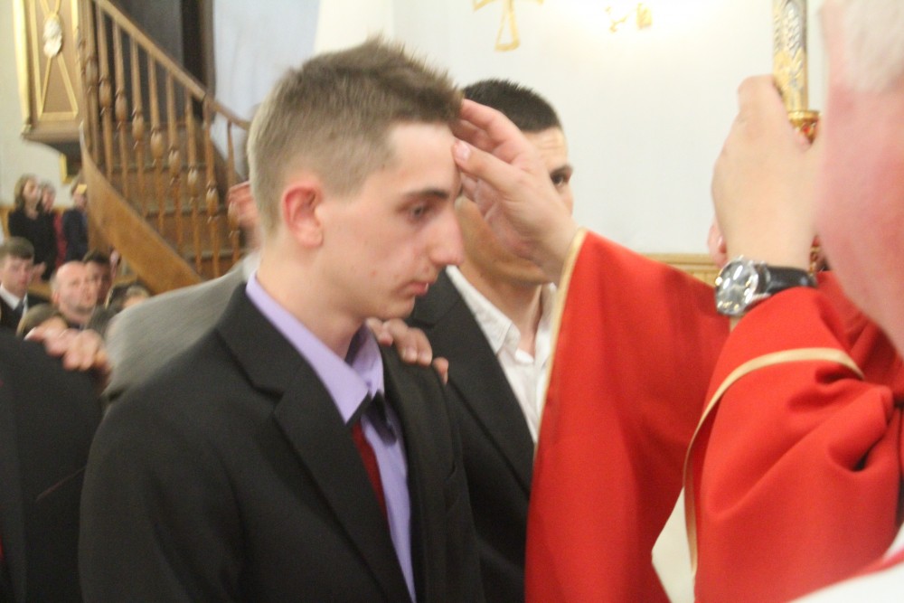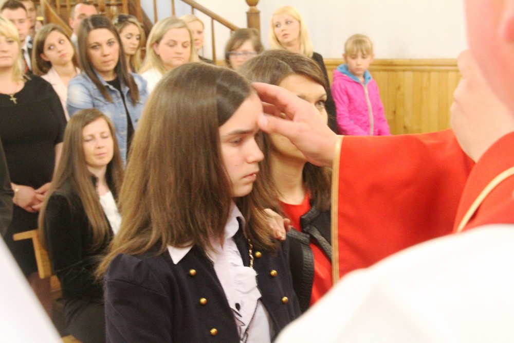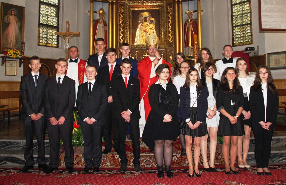 W dniu 19 maja, podczas wieczornej eucharystii J.E. Biskup Damian Muskus udzielił bierzmowania młodzieży klas III gimnazjum. To kolejny, poza chrztem i eucharystią, sakrament wtajemniczenia chrześcijańskiego. Przyjmujący go, jak dobrze wyraża to sposób sprawowania liturgii, zostaje umocniony Darem Ducha Świętego, aby mężnie wiarę wyznawał, według niej żył i bronił jej. Staje się zatem dojrzałym chrześcijaninem, a wyjaśniając obrazowo, żołnierzem Chrystusa. Życzymy wierności tej łasce, która została dana nam wszystkim niezasłużenie.
