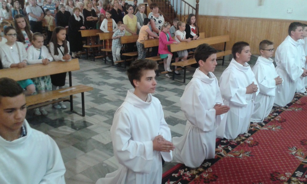 Zbliża się koniec roku szkolnego i kończy się rok formacyjny we wspólnotach naszej parafii. Niektórzy członkowie służby liturgicznej uczestniczyli w ostatnich miesiącach w spotkaniach rozwijających ich posługę przy ołtarzu Słowa Bożego i Eucharystii. W minioną niedzielę, 12 czerwca, uczestnicy tych zajęć odnowili przyrzeczenia składane przy wstąpieniu w szeregi ministrantów i przyjęli uroczyste błogosławieństwo.
