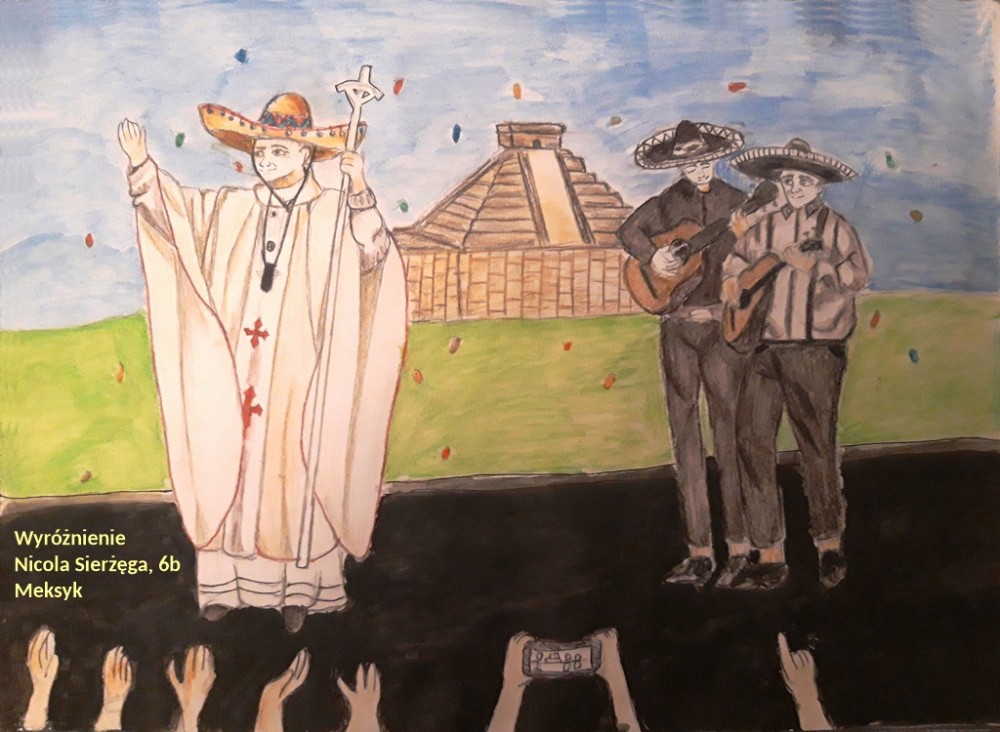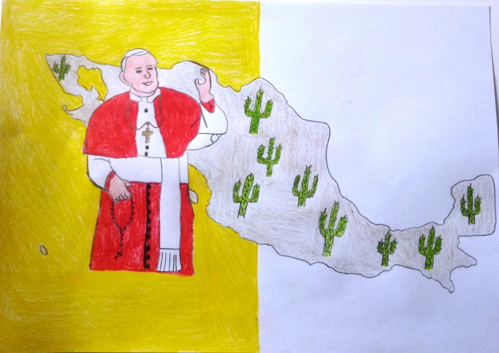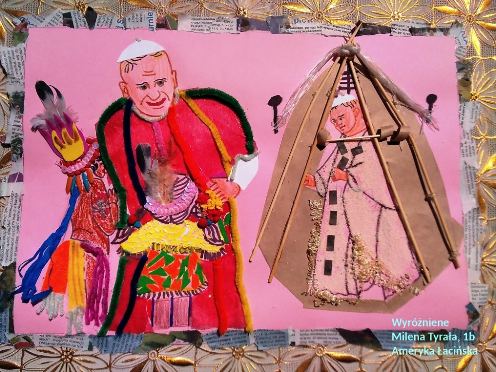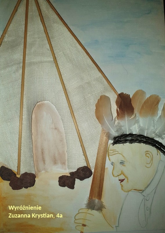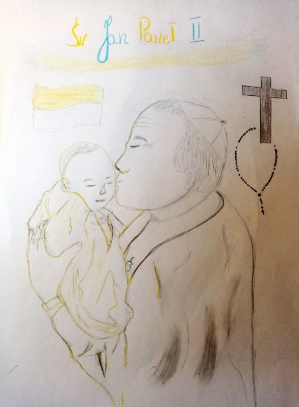 - II miejsce ex aequo Dagmara Bałys, klasa 7b (za niebywałą precyzję w oddaniu wizerunku papieża i miejsc mu najmilszych w Polsce)