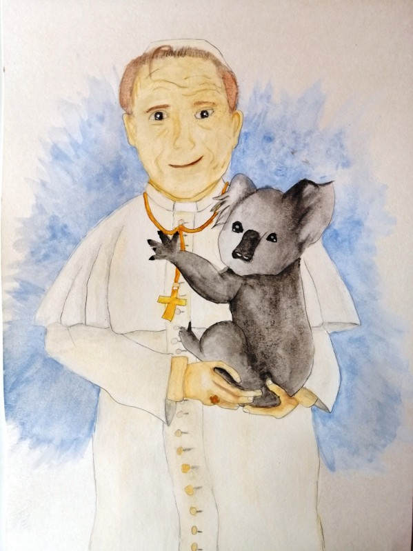 - II miejsce: Maja Mruczek, klasa 1a (za papieskie oczy i dziecięce spojrzenie - pełne podziwu i zachwytu - na barwną różnorodność przyrody egzotycznej Australii)
