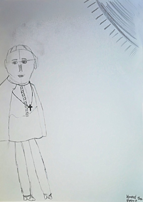 - I miejsce: Patrycja Sowa, klasa 4b (za oddanie głębokich emocji w oczach Afrykańskiej rodziny wpatrzonej w papieża pielgrzyma oraz za oddziaływanie wspaniałymi zestawieniami słonecznych barw)