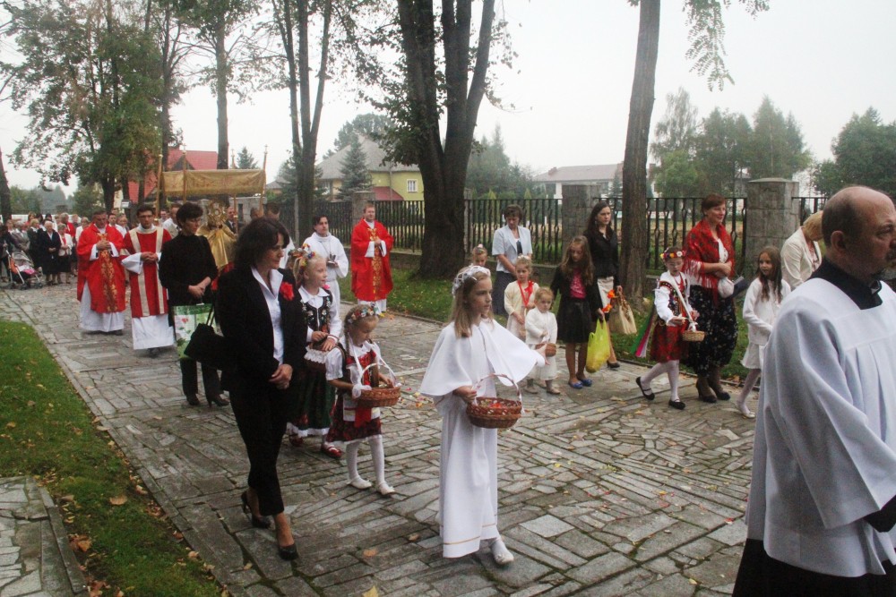 Święto Podwyższenia Krzyża Świętego kieruje nasze myśli do wdzięczności Bogu za naszą starą świątynie. Modlitwie tego dnia towarzyszyły rozważania ks. Janusza Sołtysa, proboszcza z Radoczy, który w tym roku przeżywa jubileusz 25 lecia święceń kapłańskich. W swoim słowie przypomniał nam o wartości cierpienia tego niezawinionego, i tego, które związanie jest z ofiara miłości. Przy okazji tego święta, jak co roku, dziękujemy za plony ziemi. W tym roku dziękczynieniu za zbiory przewodzili parafianie z Chałpek.