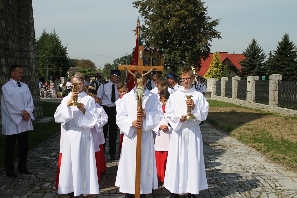 Mszy św. odpustowej przewodniczył ks. Paweł Andrejczuk, pochodzący z archidiecezji wrocławskiej i studiujący w Krakowie. Ks. Paweł przypomniał w homilii o najważniejszym znaczeniu krzyża, którym jest niewyobrażalna miłość Pana Boga do nas. Kaznodzieja wspomniał także o ważnej i szczególnej pracy rolnika, który w pocie czoła stara się o to, by na naszych stołach nie zabrakło chleba. Całe kazanie odpustowe można posłuchać na naszym parafialnym kanale YouTube, pod tym linkiem.