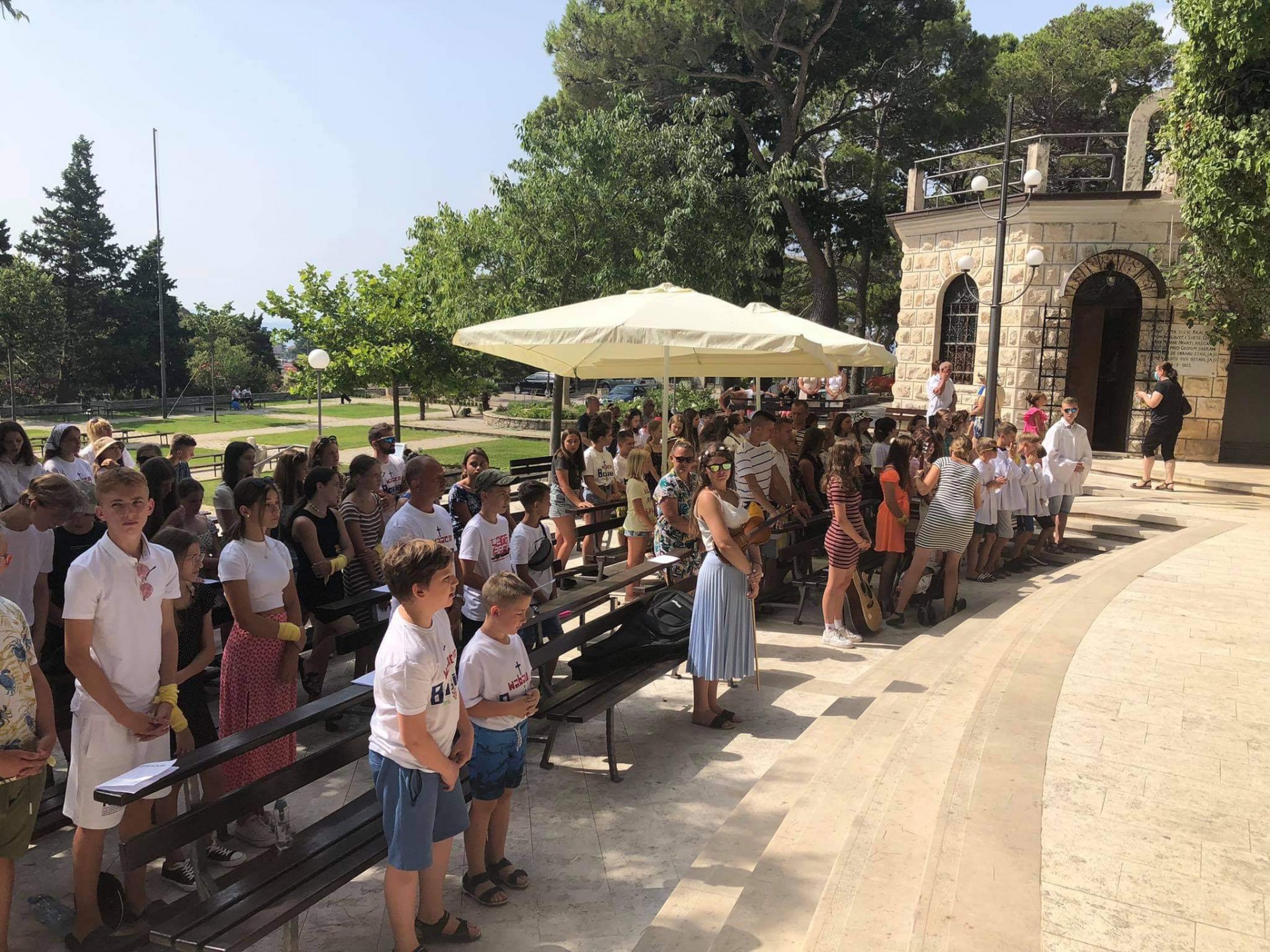 Oczywiście nie sposób pominąć czasu spędzonego w Drveniku. Może tym razem, krótko i zwięźle: dyskoteki, plażowanie, kąpiel w morzu, godzinne spacery brzegiem morza, wizyty i pokojowe rozmowy. Wakacje z Bogiem, a więc nie mogliśmy zapomnieć o modlitwie i codziennej mszy św. Kościół nie był nam potrzebny, aby chwalić Pana. Ks. Łukasz odprawiał mszę św. w najpiękniejszym kościele. Sufit to niebo, ściany stanowiły pachnące palmy. Naszym śpiewom przygrywały cykady.