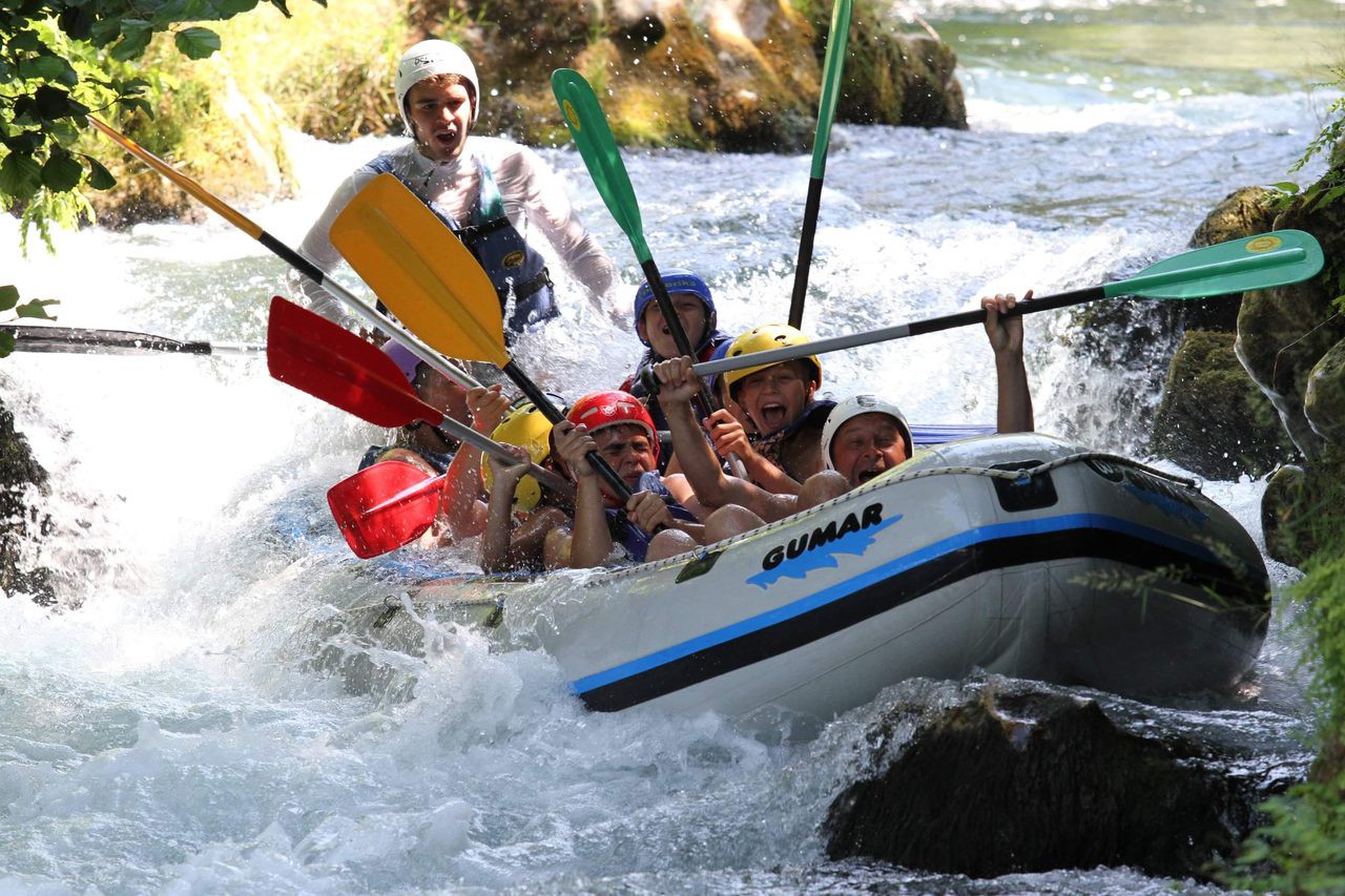 Kolejna atrakcja to Cetina, jedna z najpiękniejszych chorwackich rzek. Przeźroczysta woda otoczona bujną zielenią z kilkoma pięknymi wysepkami, ozdobionymi kaskadami i wodospadami. Pilot wyjaśnił nam, jak kierować pontonem: „Wiosłuj lewo”, „Wiosłuj prawo” i oczywiście tylko dla wtajemniczonych: „Bomba”J W połowie trasy wysiadamy z pontonów, spływ ze względów bezpieczeństwa (wysokie wodospady), kontynuuje sam pilot. Pieszo pokonujemy górską ścieżką kilkanaście metrów. Ponownie zajmujemy miejsce w pontonach i kontynuujemy spływ. Kolejna atrakcja - kąpiel w orzeźwiającej wodzie Cetiny.