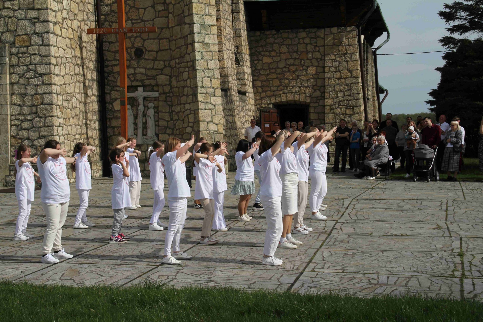 Grupa tancerek w różnym wieku, ale z taką samą energią wykonała na rozpoczęcie Godziny Miłosierdzia taniec dla Jezusa. Chcemy czas wielkopostnej refleksji zamieniać w radość i przypominać wszystkim, że Jezus żyje. W czasie tańca uczestnicy słyszą między innymi, że „dzięki Golgocie możemy żyć”. Tańcem chcemy wielbić Boga. Ten kto tańczy, podobnie jak ze śpiewem, dwa razy się modli. Po zakończeniu tańca na placu kościelnym wszyscy przeszlli do kościoła na część liturgiczną. Wchodząc, wszyscy mogli się poczęstować Krówką Miłosierdzia, ufundowaną przez tajemnczego sponsora.