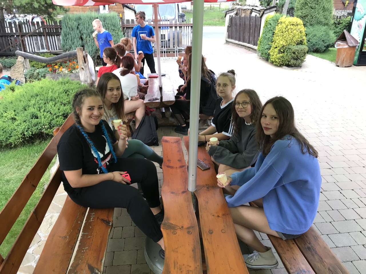 Po zejściu z Modyni (tak tak - Modyń to rodzaj żeński) pojechaliśmy do zaprzyjaźnionego gospodarstwa agroturystycznego w Ochotnicy Dolnej gdzie mieliśmy przygotowane dla nas dodatkowe atrakcje: grill, pyszne jedzenie ponad nasze możliwości, boisko, huśtawki oraz trampolinę, które okazała się najjwiększym hitem wyjazdu. W drodze powrotnej zatrzymaliśmy się jeszcze w Ostrowsku, by skosztować słynnych ciasteczkowych lodów.